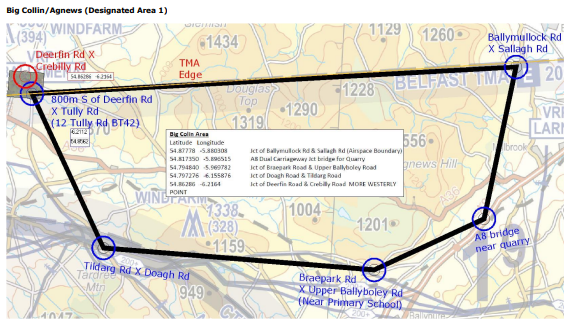 - Hazards: Wake turbulence from the Ballykeel Windfarm turbines can be significant in the bottom landing areas if the turbines have not be stopped by a UHPC member.